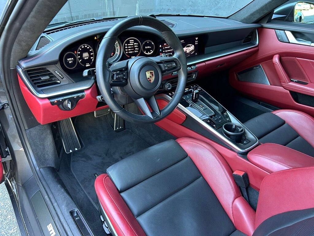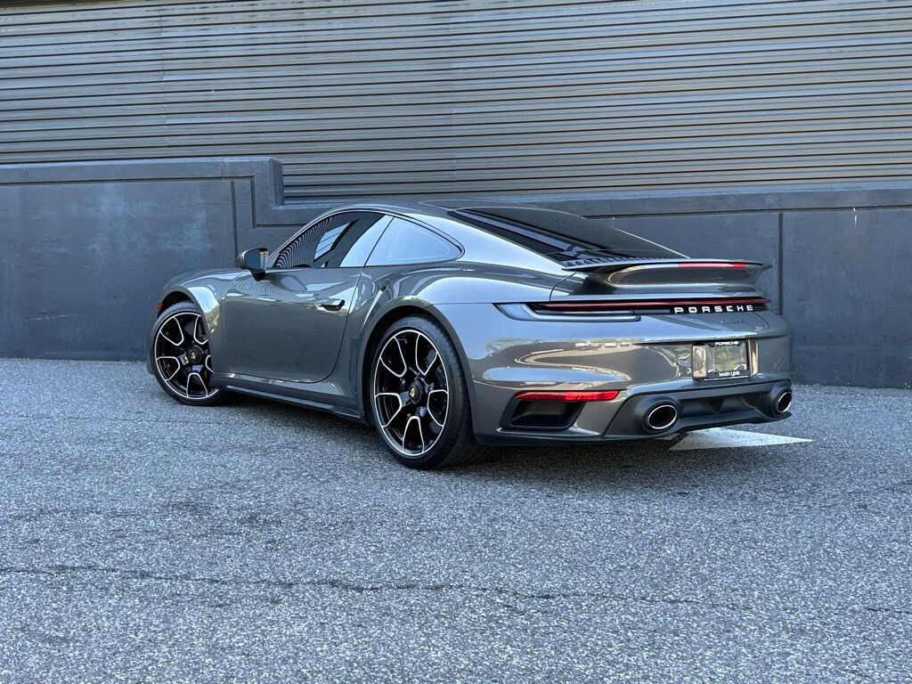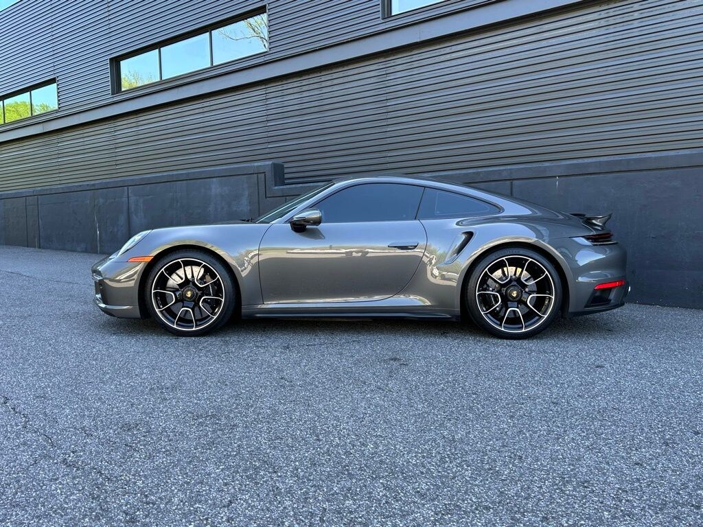 You are looking at a 2022 Porsche 911 Turbo S with 18,504 miles. The options include: Electric Slide/Tilt Sunroof, Exterior Mirror Base in High Gloss Black, Window Trim in High Gloss Black, Rear Side Air Intakes in Exterior Color, Under Door Puddle Light Projectors, Model Designation on Rear in Exterior Color, Rear Lid Grille Vertical Slat Inlays in Exterior Color, Sport Exhaust System incl. Tailpipes in Silver, Porsche Ceramic Composite Brakes (PCCB) with Calipers in High Gloss Black, Power Steering Plus, Front Axle Lift System, Wheels Painted in High Gloss Black, 20''/21'' 911 Turbo S Exclusive Design Wheels, Ventilated Seats (Front), Heated GT Sport Steering Wheel in Leather, Steering Column Casing in Leather i.c.w. Memory Package, Passenger Cupholder Trim in Leather, Door-Sill Guards in Matte Carbon Fiber, Illuminated, Burmester High-End Surround Sound System, Color Selection for Deviated Leather - Black, Deviated Leather Seat Centers, Surround View, Lane Change Assist (LCA), Adaptive Cruise Control (ACC).