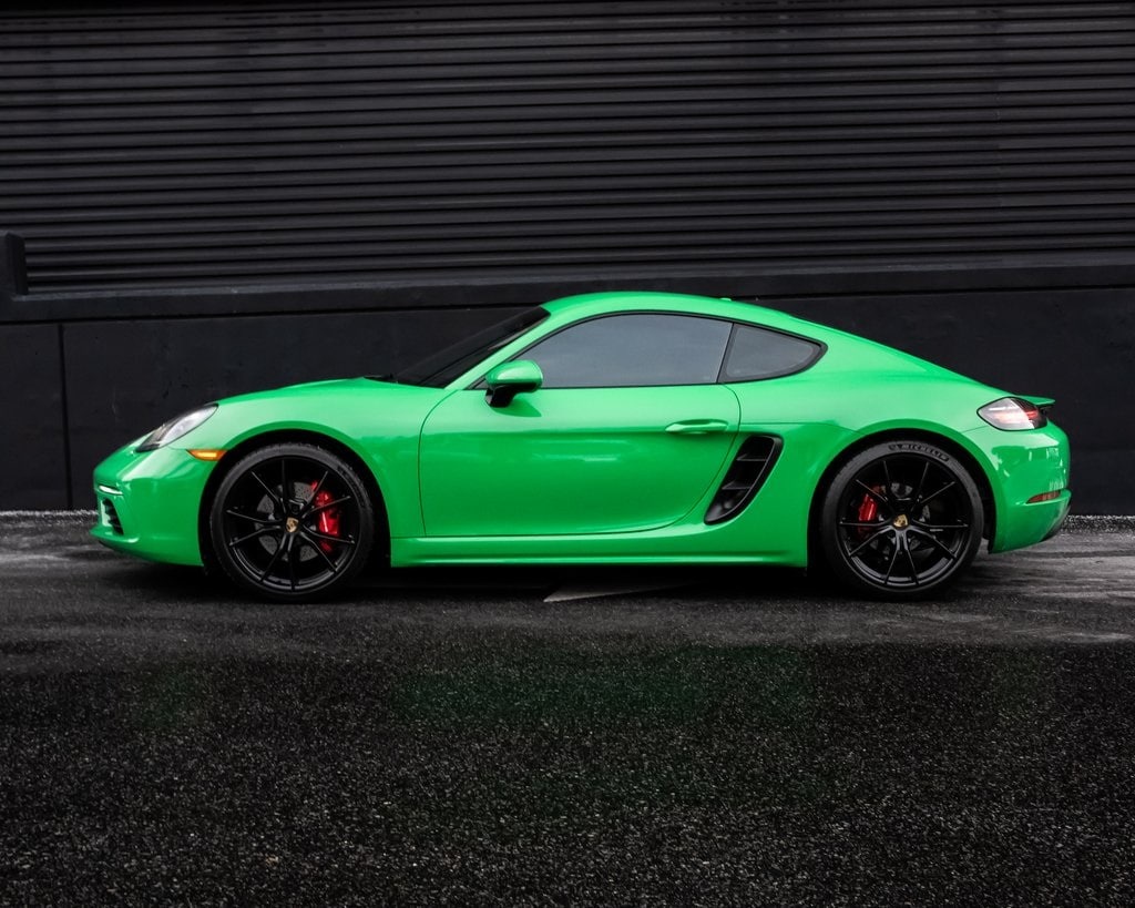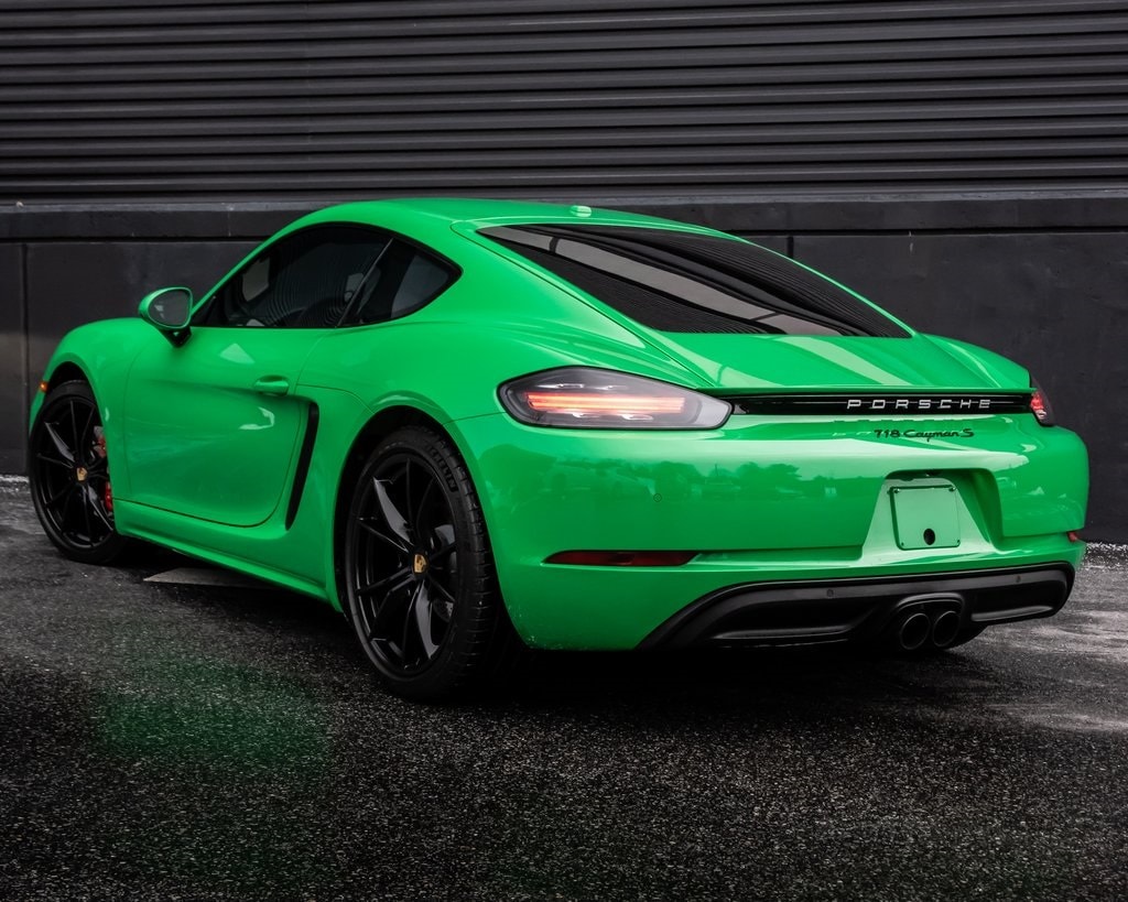 You are looking at a 2023 Porsche 718 Cayman S with 3,511 miles. The options include: Model Designation on Rear in High Gloss Black, 7-speed Porsche Doppelkupplung (PDK), Sport Tailpipes in Black, Wheels Painted in Satin Black, Locking Wheel Bolts, 20'' Carrera S Wheels, Heated Multifunction Steering Wheel, Luggage Net in Passenger Footwell.
