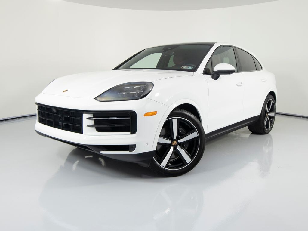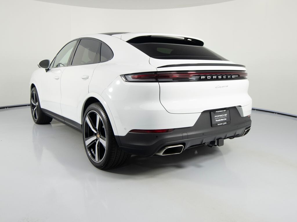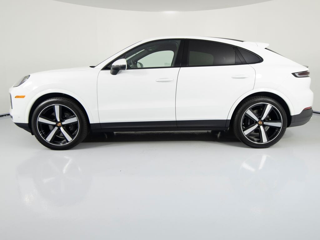 You are looking at a 2025 Porsche Cayenne Coupe with 4,866 miles. The options include: Premium Package Plus, Trailer Hitch without Tow Ball, 22'' Exclusive Design Sport Wheels in High Gloss Black, Porsche Crest on Headrests (Front), Power Seats (14-way) with Comfort Memory, Rear Comfort Seats (2+1), Heated Seats (Rear), Ventilated Seats (Front), BOSE Surround Sound System, HD-Matrix Design LED Headlights, Under Door Puddle Light Projectors, 4-Zone Climate Control, Adaptive Cruise Control incl. Lane Keep Assist (LKA).