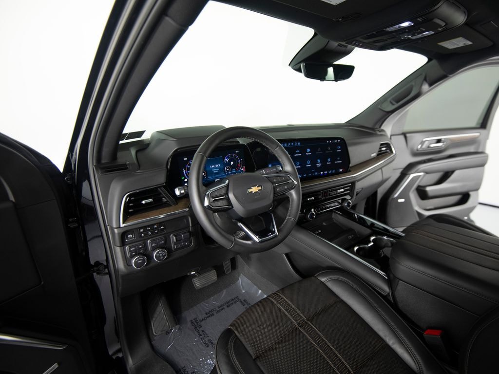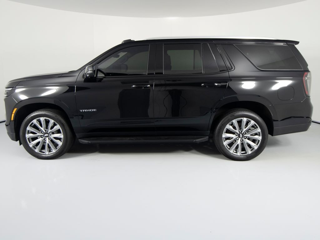 You are looking at a 2025 Chevrolet Tahoe High Country with 22,681 miles. The options include: 10-speaker Bose audio system, Multicolor head-up display, Wireless charging for devices, Keyless open, lock & start, Wireless Apple CarPlay and wireless Android Auto for compatible phones, Tri-zone automatic HVAC, Rear camera mirror, Heated & ventilated front power bucket seats with perforated leather seating surfaces, Memory settings for driver seat, outside mirrors, and steering column, Second-row heated bucket seats with power release, Third-row 60/40 split bench with power fold, Power-fold mirrors with turn signal indicators, Dual exhaust with dual tips, Forward collision alert, HD surround vision, Enhanced automatic parking assist, Rear cross-traffic braking, Rear pedestrian alert, Safety alert seat, Theft deterrent system, Sun and Tow Package, Power panoramic sunroof with tilt-sliding and power sunshade, Max Trailering Package, Smart trailer integration indicator, Hitch view, Blind zone steering assist with trailering, Trailer brake controller, Premium Liner Protection Package (dealer-installed), All-weather cargo mat, Premium floor liner, 1st and 2nd rows, All-weather floor liner.